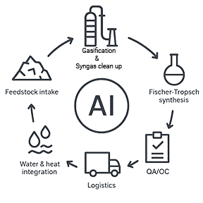 AI-driven closed loop for modular SAF production – clean energy, optimized.